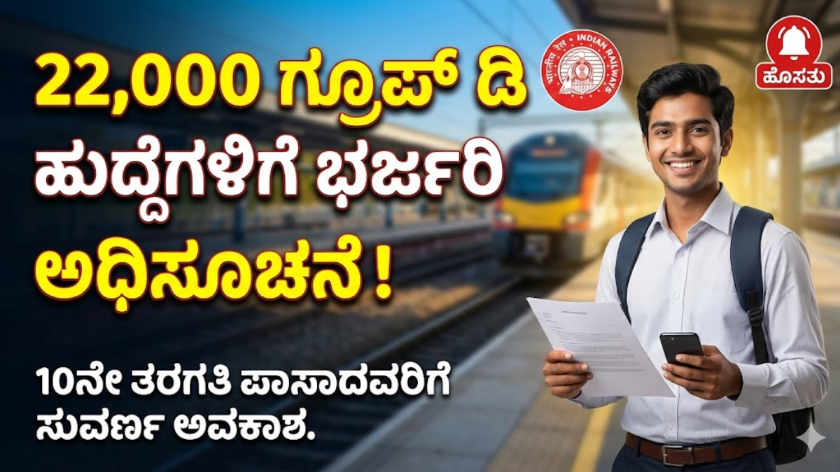 ರೈಲ್ವೆ ಇಲಾಖೆ ನೇಮಕಾತಿ 2026: 22,000 ಗ್ರೂಪ್ ಡಿ ಹುದ್ದೆಗಳಿಗೆ ಭರ್ಜರಿ ಅಧಿಸೂಚನೆ! 10ನೇ ತರಗತಿ ಪಾಸಾದವರಿಗೆ ಸುವರ್ಣ ಅವಕಾಶ.